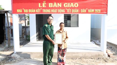 Ngày 26-1, Ban Chỉ huy Bộ đội Biên phòng tỉnh An Giang phối hợp với cấp ủy, chính quyền địa phương xã Hòa Điền (tỉnh An Giang) tổ chức Lễ bàn giao nhà “Đại đoàn kết” tặng 2 hộ dân có hoàn cảnh khó khăn trên địa bàn ấp Núi Trầu, trong khuôn khổ hoạt động “Tết quân-dân” năm 2026.