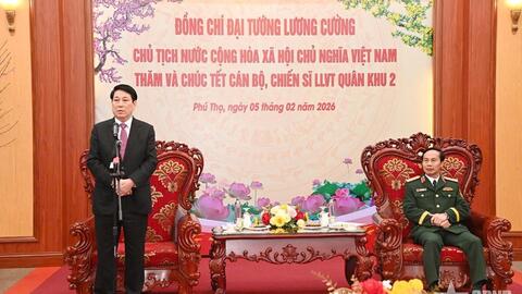 Sáng 5/2, Lễ đón chính thức Tổng Bí thư Tô Lâm cùng đoàn đại biểu cấp cao Việt Nam thăm cấp Nhà nước tới Lào đã diễn ra trọng thể tại Phủ Chủ tịch, thủ đô Viêng Chăn.