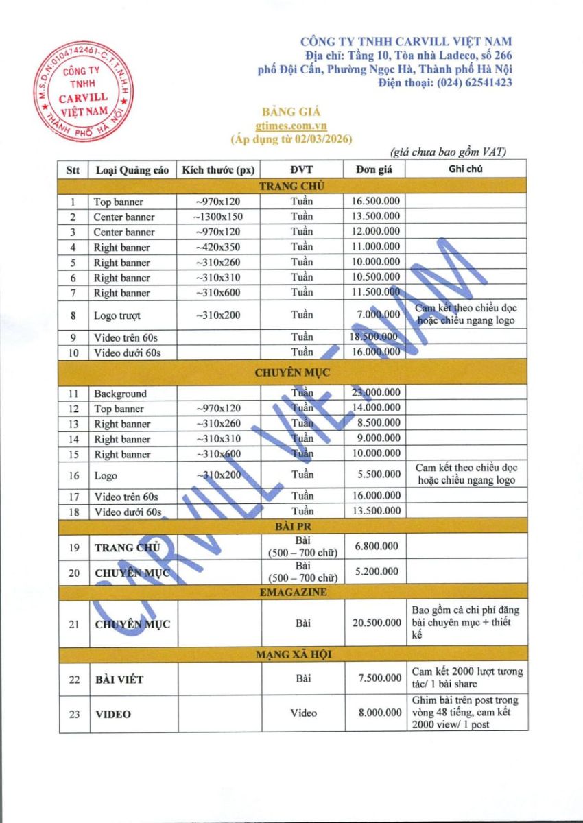 ĐT: 024 62541423 | Email: media-booking@carvill-vietnam.com