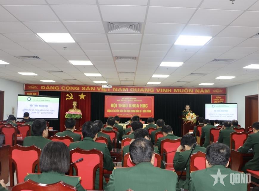 Ngày 24-12, tại Hà Nội, Học viện Kỹ thuật Quân sự tổ chức Hội thảo khoa học với chủ đề “Lượng tử và tiềm năng ứng dụng trong quân sự - quốc phòng”. Trung tướng, GS, TS Lê Minh Thái, Giám đốc Học viện chủ trì hội thảo.