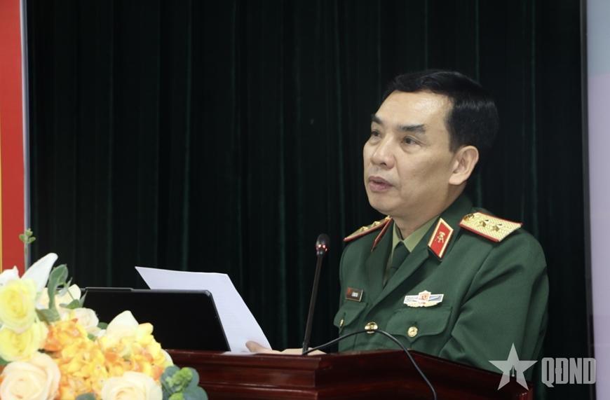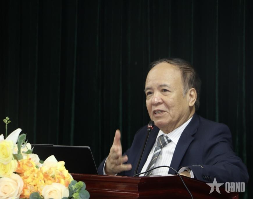 Trung tướng, GS, TS Lê Minh Thái, Giám đốc Học viện Kỹ thuật Quân sự phát biểu tại hội thảo. |