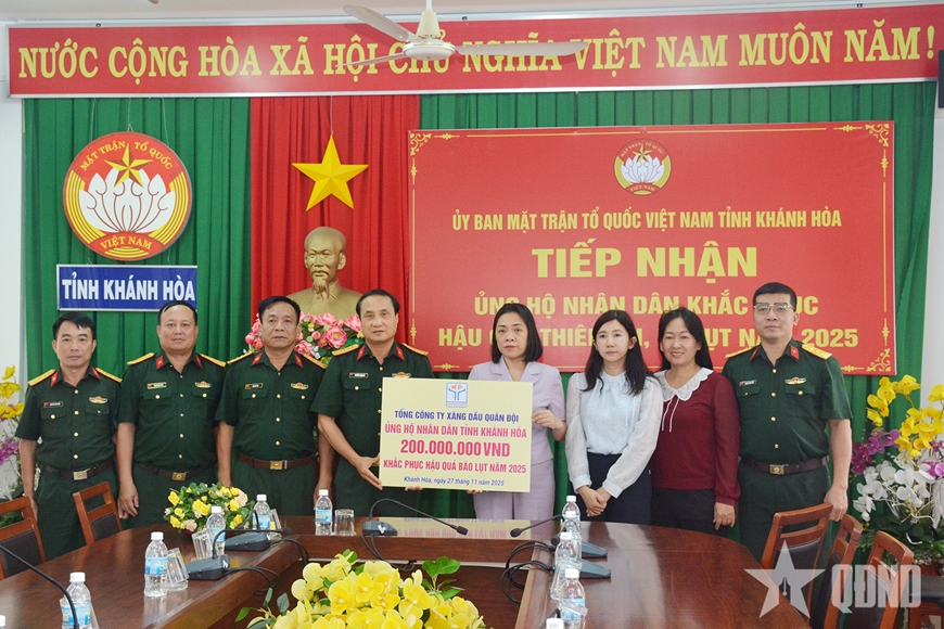 Tổng công ty Xăng dầu Quân đội trao 200 triệu đồng ủng hộ tỉnh Khánh Hòa. |