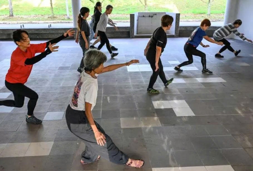 Người cao tuổi khởi động trước khi vào buổi tập parkour ở quận Toa Payoh, Singapore. Ảnh: tv5monde.com |