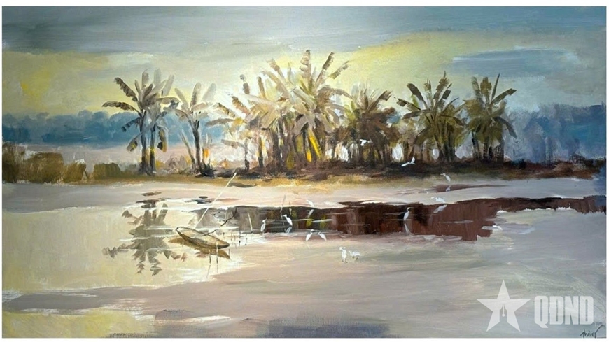 Họa sĩ Quỳnh Thơm lựa chọn cảnh sắc quê hương để sáng tạo tác phẩm.