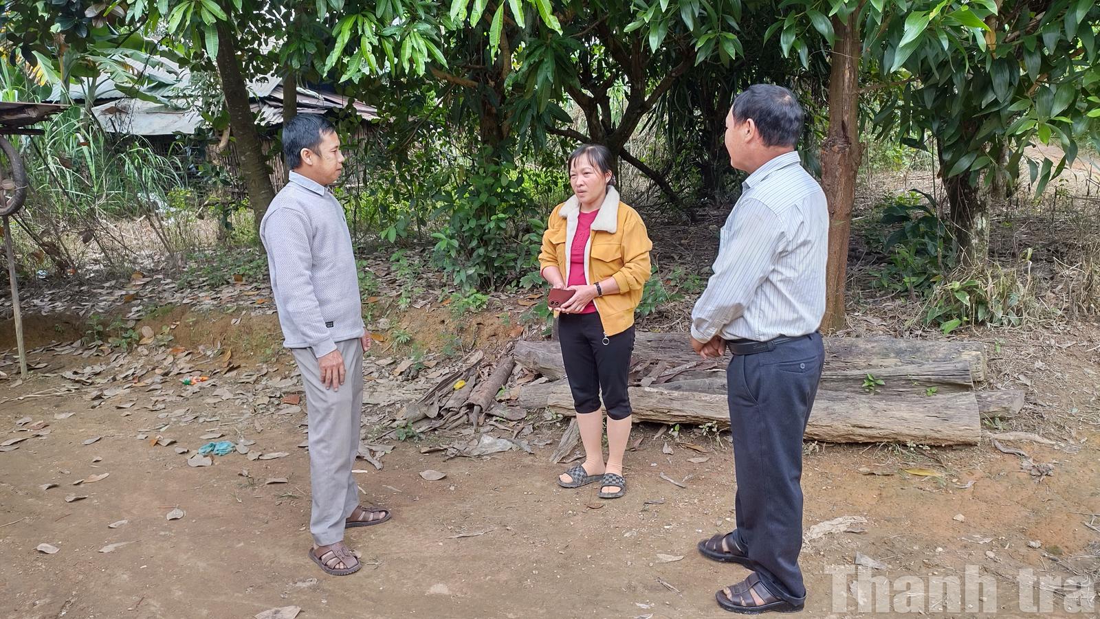 Ông Hoàng Văn Quả (bìa phải) - Trưởng thôn Ea Lang, xã Cư Pui, Đắk Lắk thường xuyên đến từng hộ gia đình để vận động bà con thay đổi nếp nghĩ, cách làm trong sản xuất, phát triển kinh tế. Ảnh: NG