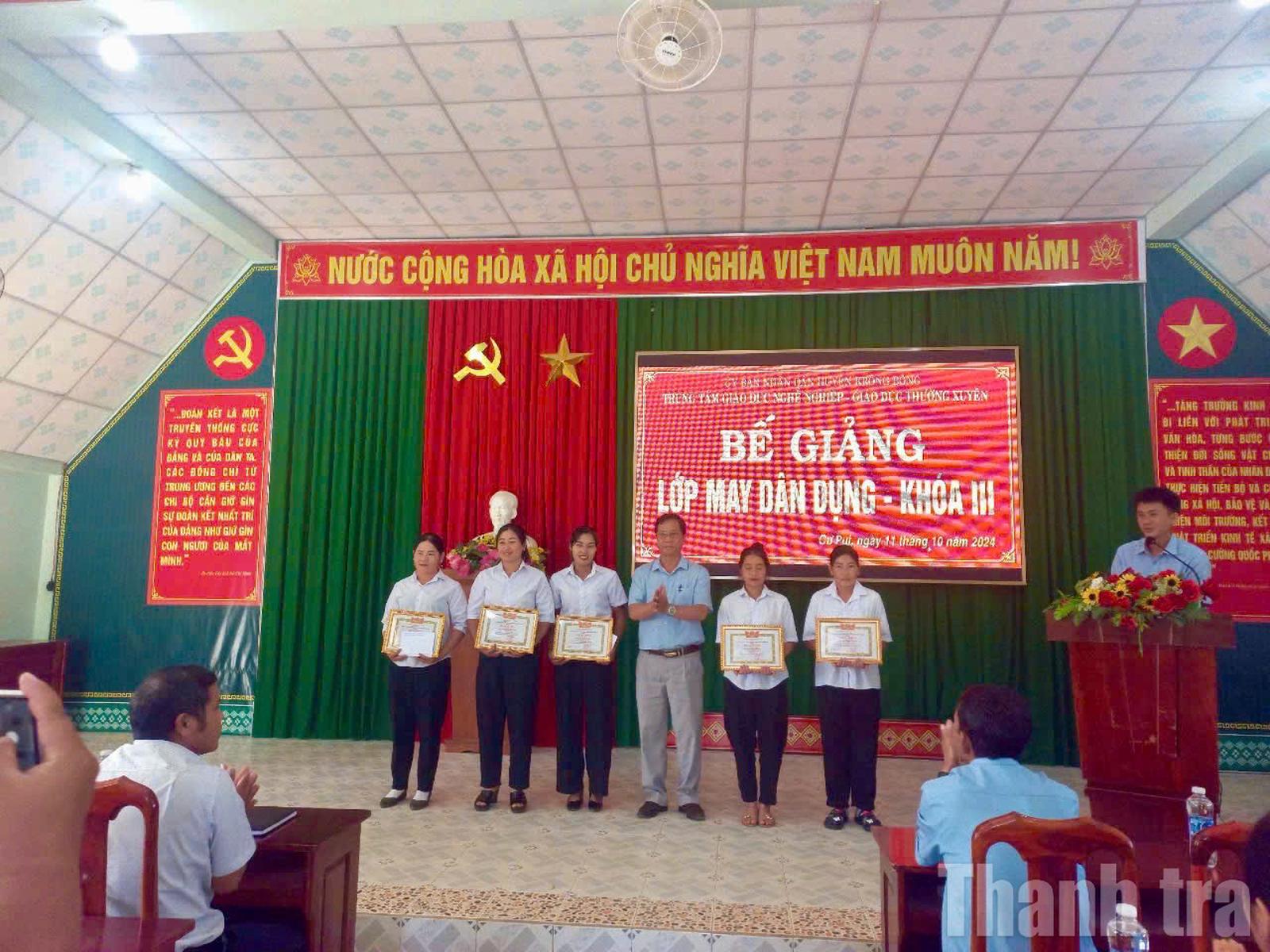 Bên cạnh các nghề nông nghiệp truyền thống, xã ưu tiên các nghề phi nông nghiệp như sửa chữa xe máy, dệt thổ cẩm, may công nghiệp, kỹ thuật nấu ăn, xây dựng dân dụng, điện dân dụng… Đây là những ngành nghề phù hợp với điều kiện thực tế, giúp người lao động có thêm lựa chọn việc làm, giảm phụ thuộc vào sản xuất nông nghiệp.
