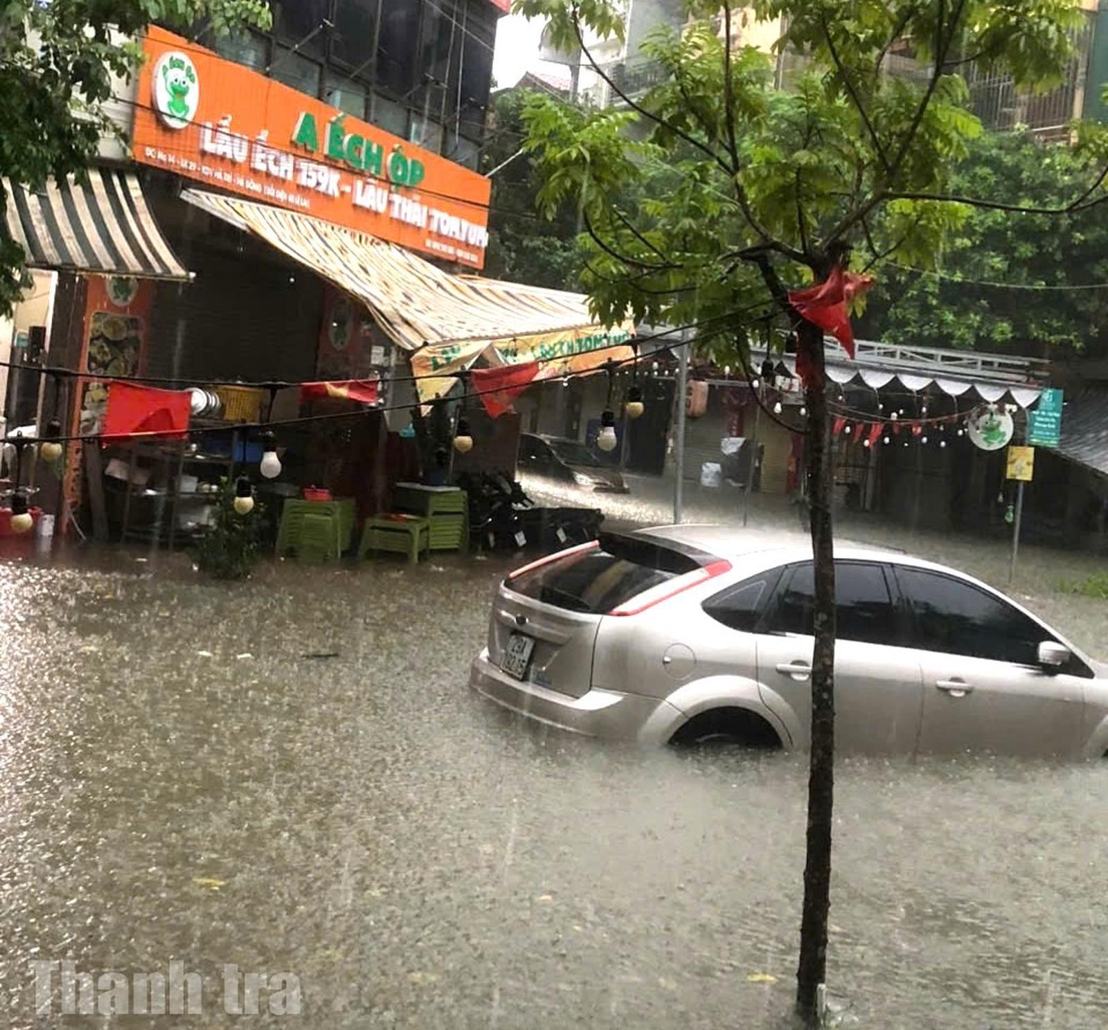 Theo Công ty Thoát nước Hà Nội, lượng mưa đo được tại một số điểm đã vượt ngưỡng 200mm, cao hơn nhiều so với khả năng tiêu thoát của hệ thống đô thị.