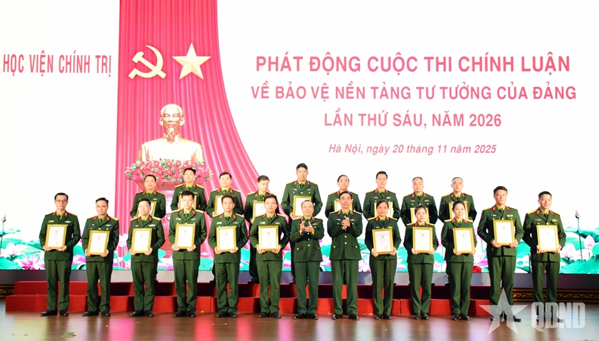 | Lãnh đạo Học viện Chính trị trao thưởng tặng các tập thể, cá nhân có thành tích xuất sắc trong tham gia Cuộc thi chính luận về bảo vệ nền tảng tư tưởng của Đảng lần thứ 5 của Học viện. |