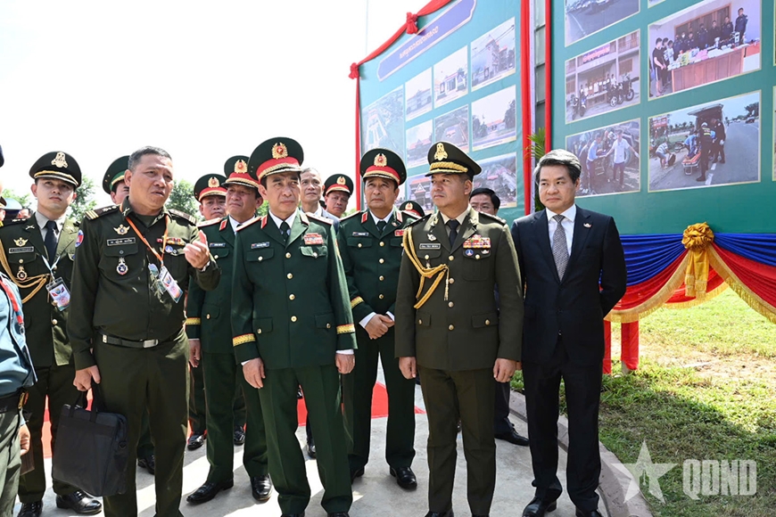 * Sáng cùng ngày, đoàn đại biểu hai nước đã tới thăm trụ sở Bộ tư lệnh Hiến binh tỉnh Svay Rieng. Được thành lập vào năm 1994, Bộ tư lệnh Hiến binh tỉnh Svay Rieng có chức năng, nhiệm vụ là giữ gìn an ninh, trật tự xã hội; đấu tranh phòng, chống tội phạm; bảo đảm quốc phòng, an ninh; cứu hộ, cứu nạn; công tác dân vận và hợp tác quốc tế.