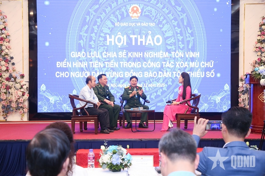 Hà Nội trong những ngày cuối năm như dịu lại, khi từng đoàn đại biểu của các địa phương hội tụ về Thủ đô tham dự hội thảo giao lưu, chia sẻ kinh nghiệm, tôn vinh điển hình tiên tiến trong công tác xóa mù chữ cho người dân vùng đồng bào dân tộc thiểu số (DTTS). Giữa không gian hội trường ấm áp, nơi những tà váy thổ cẩm rực rỡ hòa vào sắc xanh áo bộ đội và màu áo nâu của già làng, trưởng bản, không khí giao lưu, sẻ chia trở nên thân tình. Một buổi gặp gỡ mà mỗi câu chuyện được kể đều có sức lay động, như những ngọn lửa nhỏ được gom lại, thắp sáng cả một hành trình “gieo chữ” lớn lao.