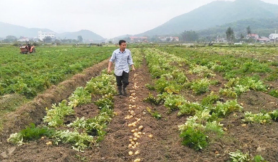 Ngành Nông nghiệp và huyện Sóc Sơn hỗ trợ nông dân trồng khoai tây giống mới cho hiệu quả kinh tế cao. Ảnh: Trọng Tùng