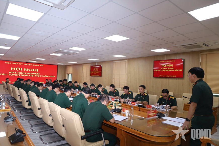 Sáng 14-10, Học viện Kỹ thuật Quân sự (KTQS) tổ chức Hội nghị rút kinh nghiệm công tác tuyển sinh đại học năm 2025. Thiếu tướng Trần Xuân Nam, Phó giám đốc Học viện KTQS chủ trì hội nghị.