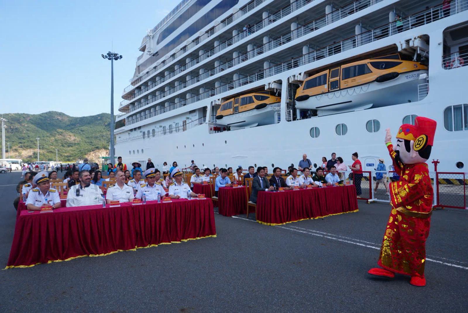 Lễ đón tàu 5 sao Seven Seas Explorer tại cảng Cam Ranh. Ảnh: Sở VHTTDL Khánh Hoà