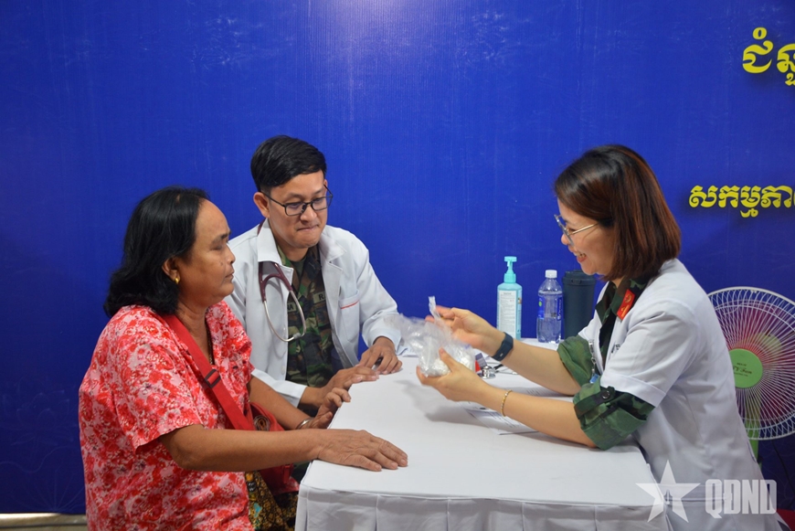 Hoạt động khám bệnh, cấp thuốc miễn phí cho nhân dân khu vực biên giới hai nước Việt Nam - Campuchia do Tổng cục Hậu cần - Kỹ thuật chỉ đạo Cục Quân y chủ trì, phối hợp với Quân y Campuchia, Quân khu 7, Bộ đội Biên phòng, Bệnh viện Quân y 175 triển khai thực hiện. Không chỉ khám các bệnh thường gặp, đoàn công tác còn tuyên truyền kiến thức về chăm sóc, bảo vệ sức khỏe, phòng, chống dịch bệnh cho gần 2.000 người dân sinh sống ở khu vực biên giới hai nước. Qua đó, thúc đẩy hợp tác quốc tế trong lĩnh vực quân y, góp phần truyền tải thông điệp về tình đoàn kết, hữu nghị, tương trợ lẫn nhau giữa Chính phủ, Quân đội và nhân dân hai nước Việt Nam - Campuchia.