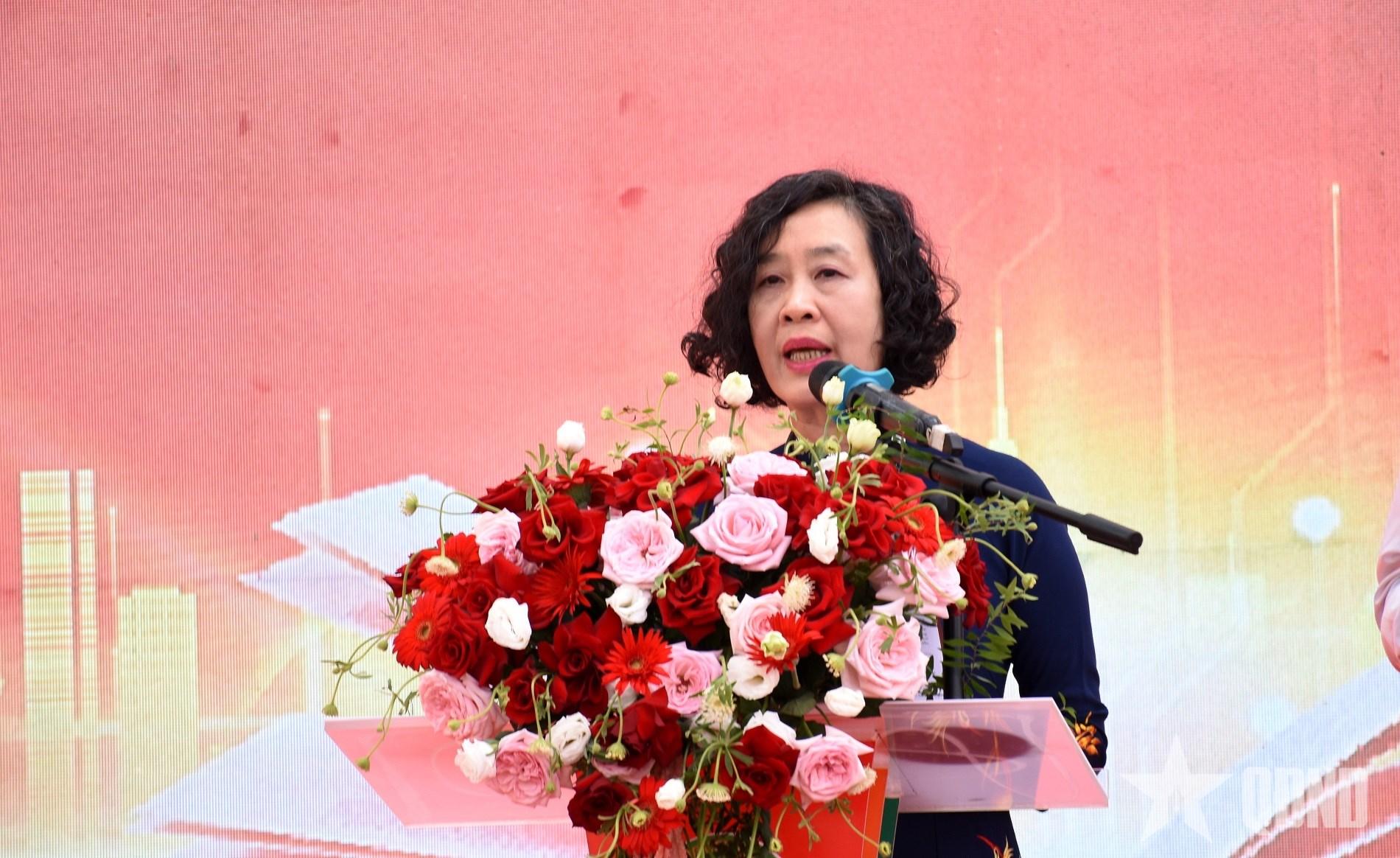 PGS, TS Nguyễn Thị Ngân Hoa, Giám đốc điều hành, Chủ tịch Hội đồng giáo dục Hệ thống giáo dục Victoria Thăng Long phát biểu trong lễ khánh thành Nhà trường. |