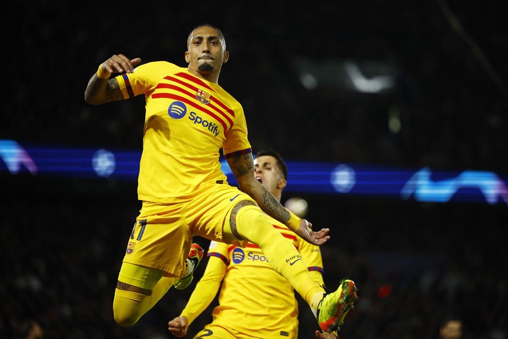 | Raphinha chói sáng với cú đúp giúp Barcelona hạ PSG. Ảnh: Reuters |