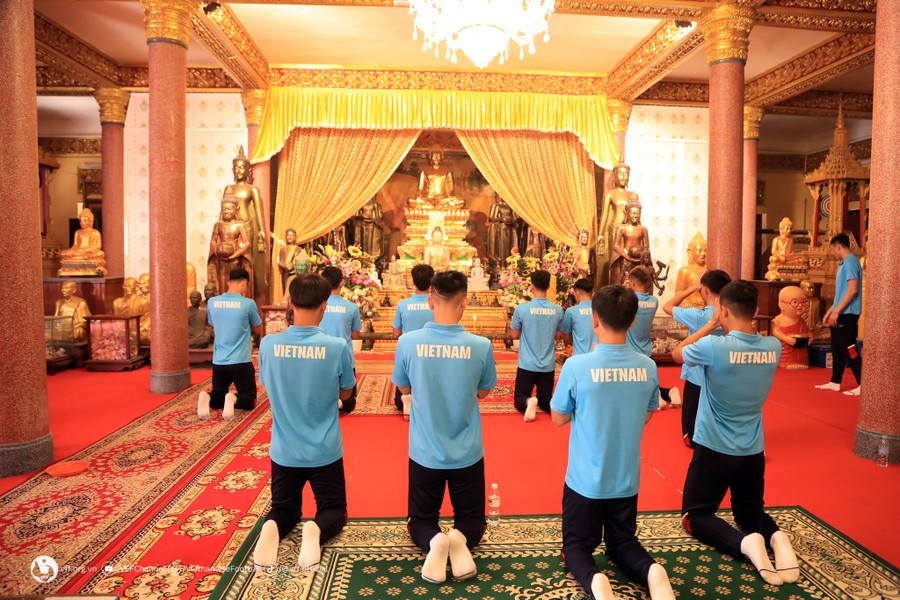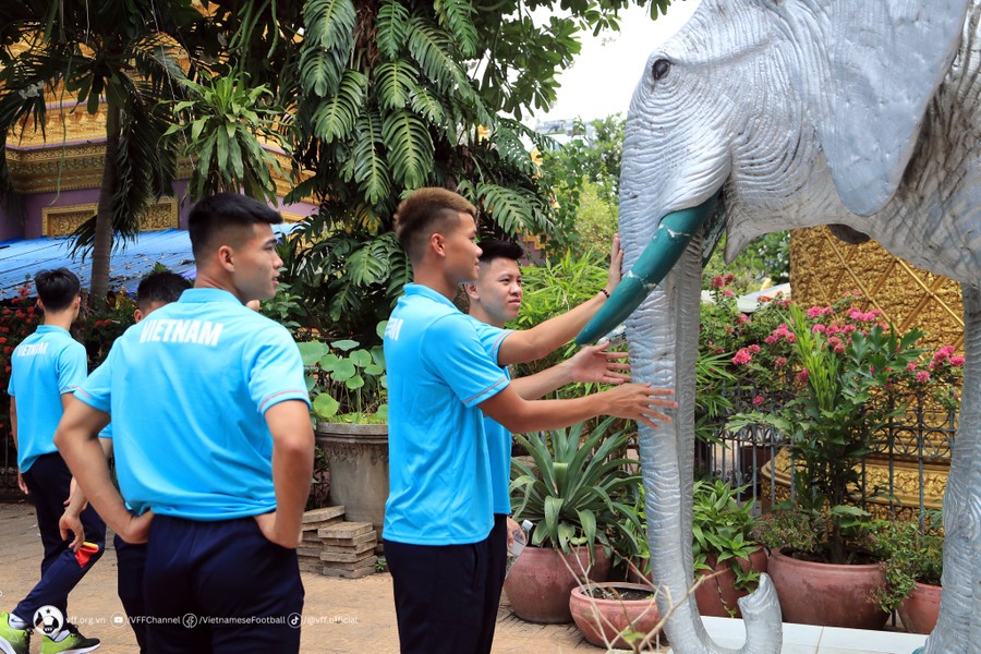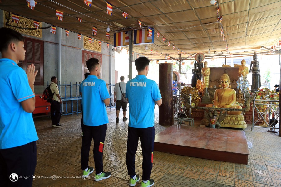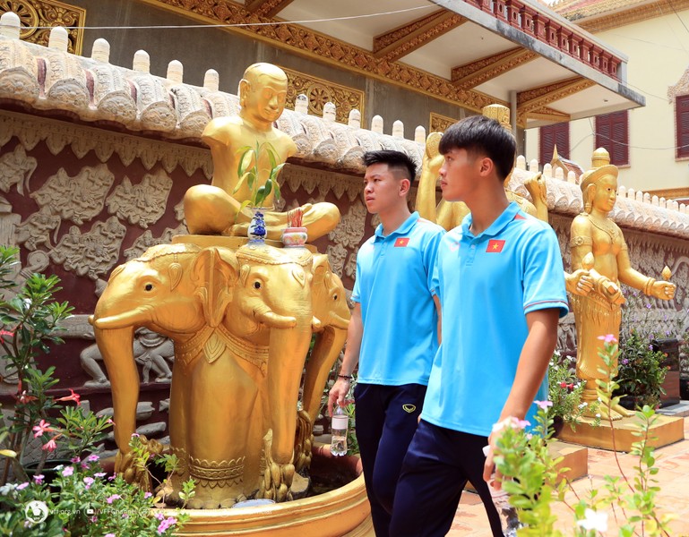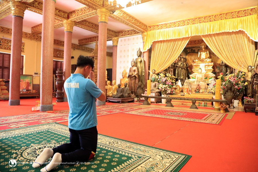 U22 Việt Nam cầu an trong ngôi chùa nổi tiếng ở Phnom Penh
