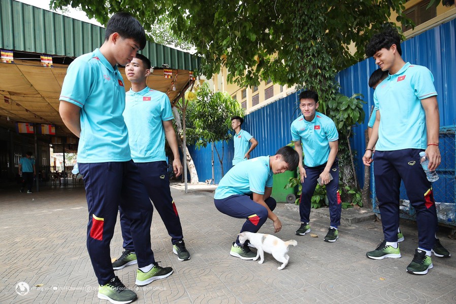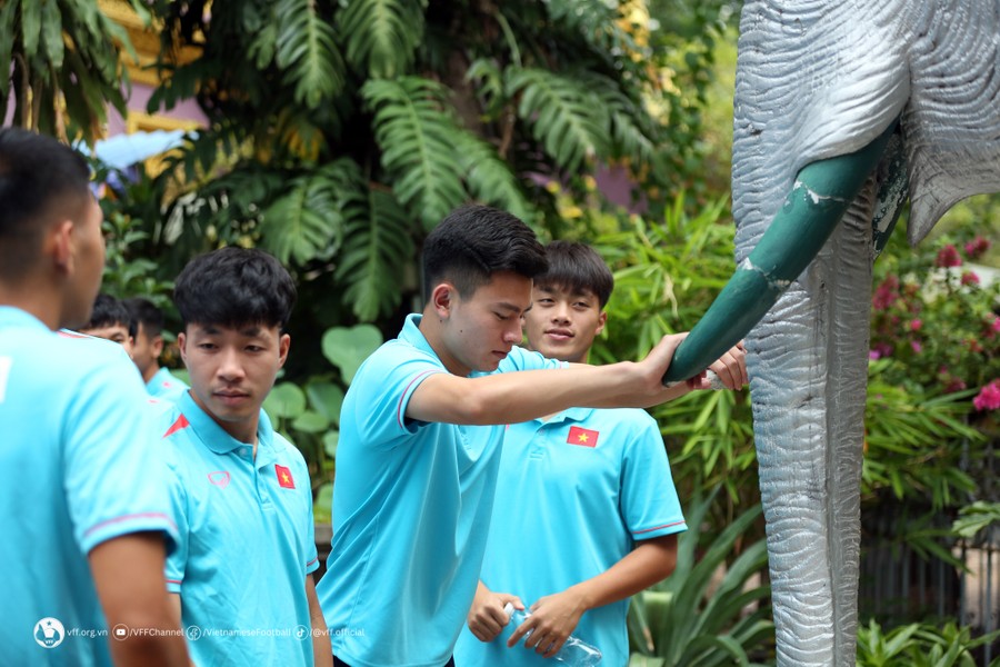 Sáng 28-4, các thành viên ĐT U22 Việt Nam dành thời gian tham quan ngôi chùa nổi tiếng Wat Ounalom ở Phnom Penh, Campuchia.