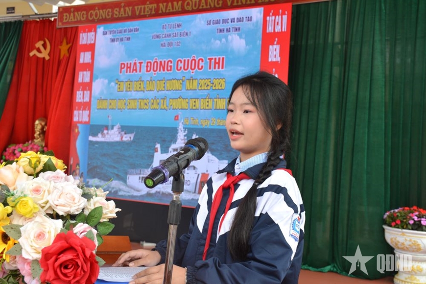 Sáng 29-12, tại Trường THCS Phổ Hải (tỉnh Hà Tĩnh), Bộ tư lệnh Vùng Cảnh sát biển 1 phối hợp với Ban Tuyên giáo và Dân vận Tỉnh ủy Hà Tĩnh, Sở Giáo dục và Đào tạo tỉnh Hà Tĩnh tổ chức phát động Cuộc thi “Em yêu biển, đảo quê hương” trực tuyến dành cho học sinh các trường trung học cơ sở trên địa bàn các xã, phường ven biển của tỉnh Hà Tĩnh.