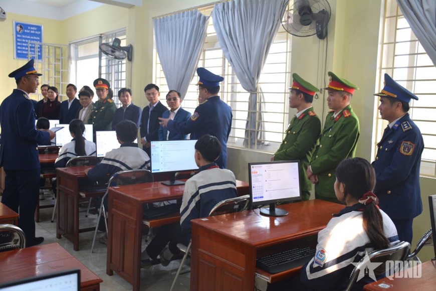 | Các đại biểu tham quan phòng thi trực tuyến tại Trường THCS Phổ Hải. |