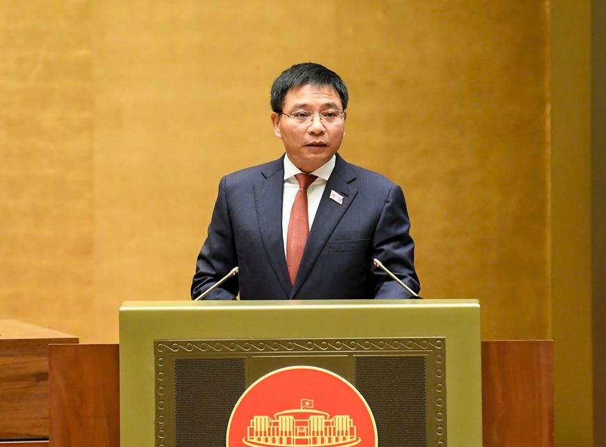 | Chủ nhiệm Ủy ban Kinh tế và Tài chính của Quốc hội Phan Văn Mãi trình bày báo cáo thẩm tra dự án luật. Ảnh: TRỌNG HẢI |