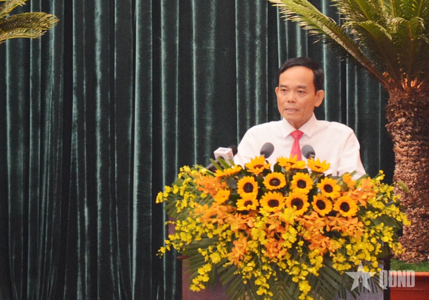 Đồng chí Bí thư Thành ủy TP Hồ Chí Minh nhấn mạnh những điểm nổi bật trong năm 2025, đặc biệt là kết quả bước đầu trong vận hành mô hình chính quyền địa phương 2 cấp. Với quy mô lớn hơn, không gian phát triển rộng hơn, tiềm năng mạnh hơn, TP Hồ Chí Minh tiếp tục gánh vác nhiệm vụ nặng nề, giữ vai trò đầu tàu kinh tế, trung tâm khoa học - công nghệ và đổi mới sáng tạo của cả nước. Mục tiêu xuyên suốt trong công tác lãnh đạo là làm cho cuộc sống của từng người dân, từng gia đình ngày càng có chất lượng tốt hơn.