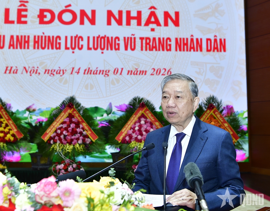 Sáng 14-1, Tổng cục Hậu cần - Kỹ thuật tổ chức Lễ đón nhận danh hiệu Anh hùng Lực lượng vũ trang nhân dân. Tổng Bí thư Tô Lâm, Bí thư Quân ủy Trung ương dự và phát biểu chỉ đạo tại buổi lễ.