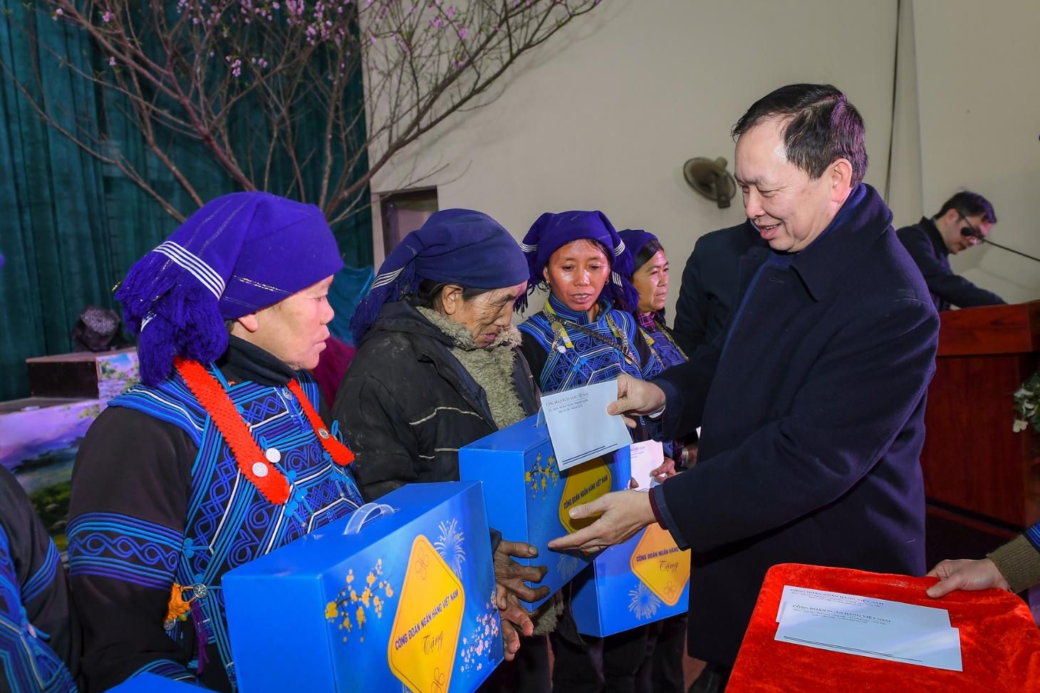 Phó Thống đốc NHNN Đào Minh Tú trao quà cho các hộ ở xã Y Tý tỉnh Lào Cai. Ảnh: CĐ