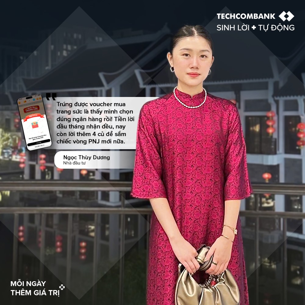 “Trúng được voucher mua trang sức là thấy mình chọn đúng ngân hàng rồi! Tiền lời đầu tháng nhận đều, nay còn lời thêm 4 triệu để sắm chiếc vòng PNJ nữa”, chị Ngọc Thùy Dương, Nhà đầu tư hào hứng cho biết.