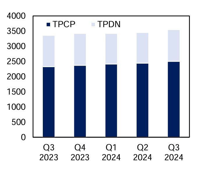 Theo Báo cáo của Công ty Chứng khoán MB (MBS), tổng giá trị trái phiếu doanh nghiệp phát hành thành công trong tháng 11/2024 ước đạt khoảng 35,8 nghìn tỷ đồng, giảm 1,9% so với tháng trước và giảm 8% so với cùng kỳ năm 2023. Trong đó, ngành Ngân hàng chiếm tỷ trọng lớn nhất 71%. Các đợt phát hành đáng chú ý trong tháng đến từ Techcombank (3,7 nghìn tỷ đồng, kỳ hạn 36 tháng, lãi suất 5%), ACB (2 nghìn tỷ đồng, kỳ hạn 24 tháng, lãi suất 5%).