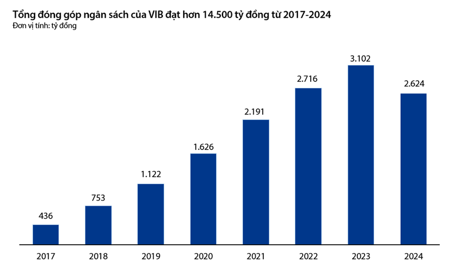 Đóng góp ngân sách của VIB giai đoạn 2017-2024. Ảnh: VIB.