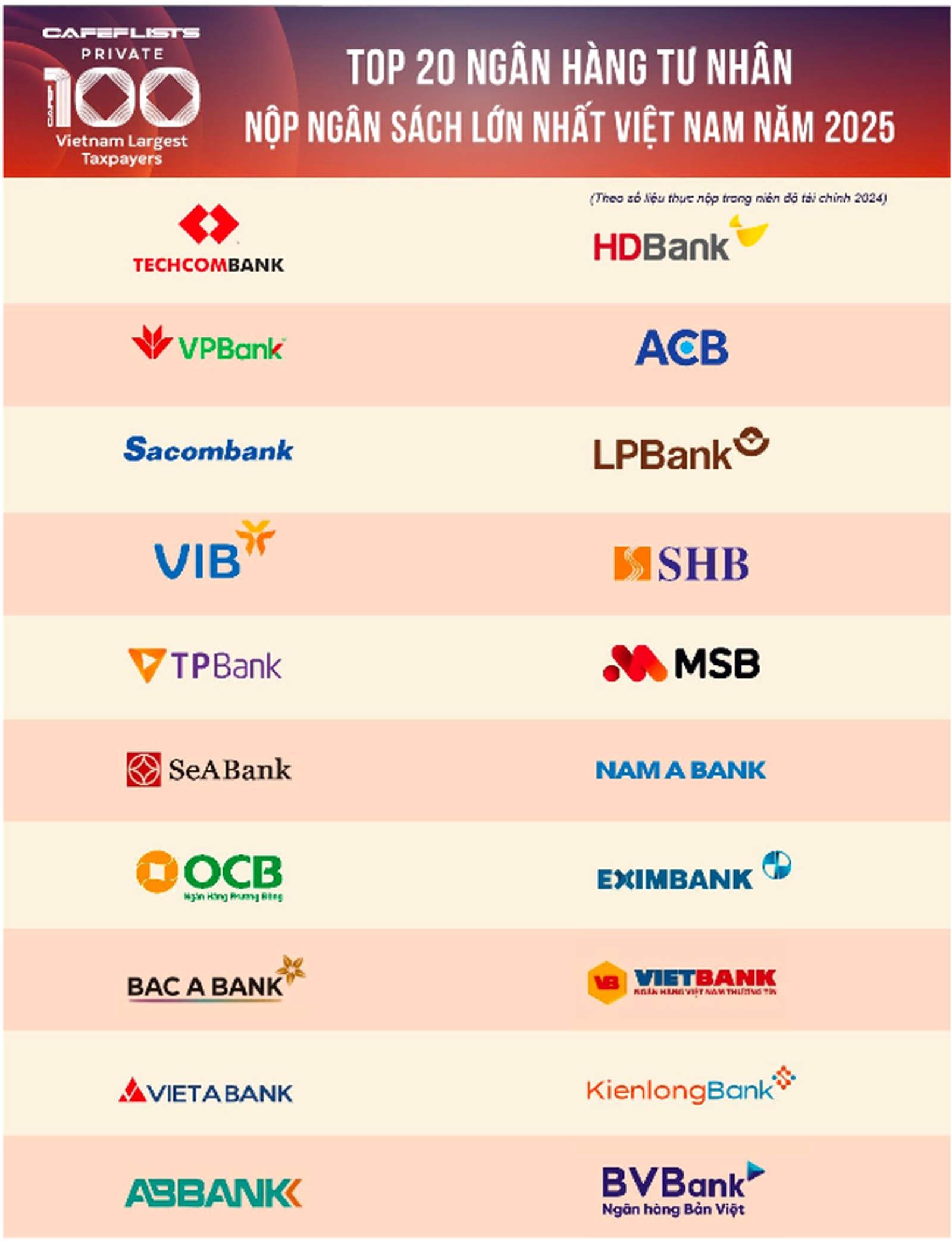 Top 20 ngân hàng tư nhân nộp ngân sách lớn nhất Việt Nam năm 2025. Ảnh: VIB.