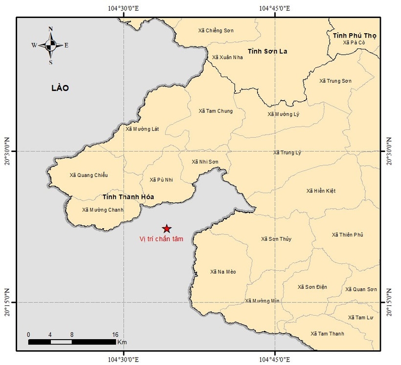 Động đất xảy ra tại khu vực tỉnh Houaphan (Lào) - cách biên giới Việt Nam ở tỉnh Thanh Hóa khoảng 5km, tối 12-11. Nguồn: Viện Các khoa học Trái đất |