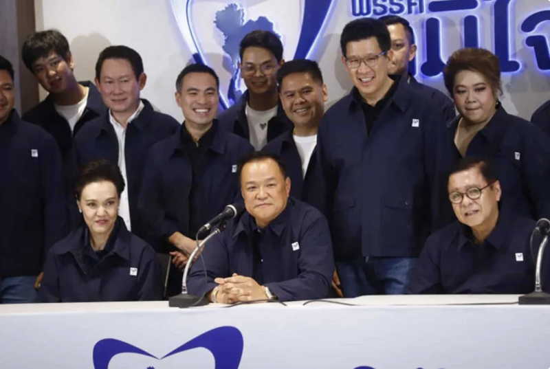 Thủ tướng Anutin Charnvirakul họp báo tại trụ sở đảng Bhumjaithai ở Bangkok ngày 8/2. Ảnh: Bangkok Post