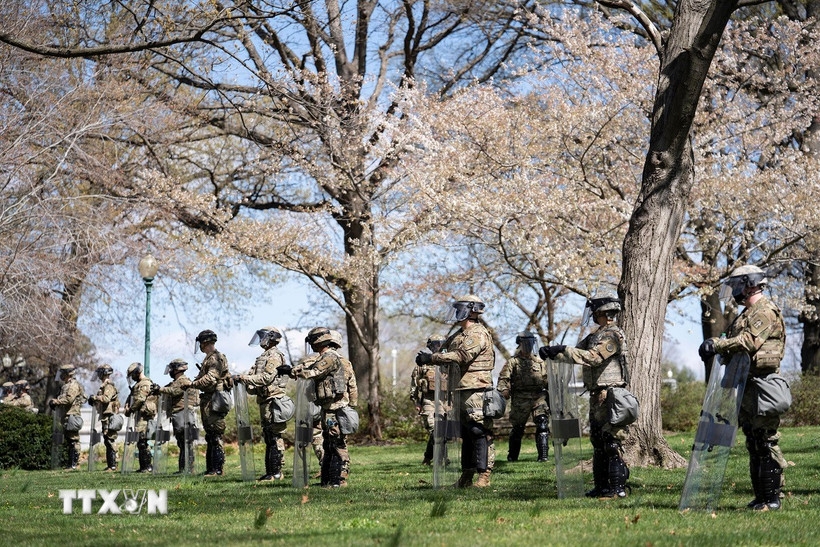 Lực lượng Vệ binh quốc gia gác tại Washington, D.C., Mỹ. Ảnh: THX/TTXVN |
