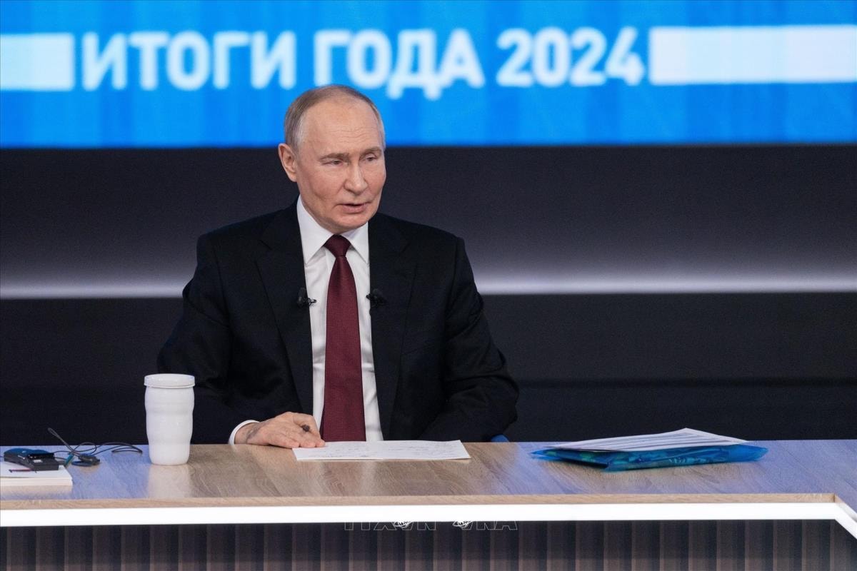 Tổng thống Nga Vladimir Putin trong cuộc họp báo cuối năm thường niên tại Moskva, ngày 19-12-2024. Ảnh: THX/TTXVN