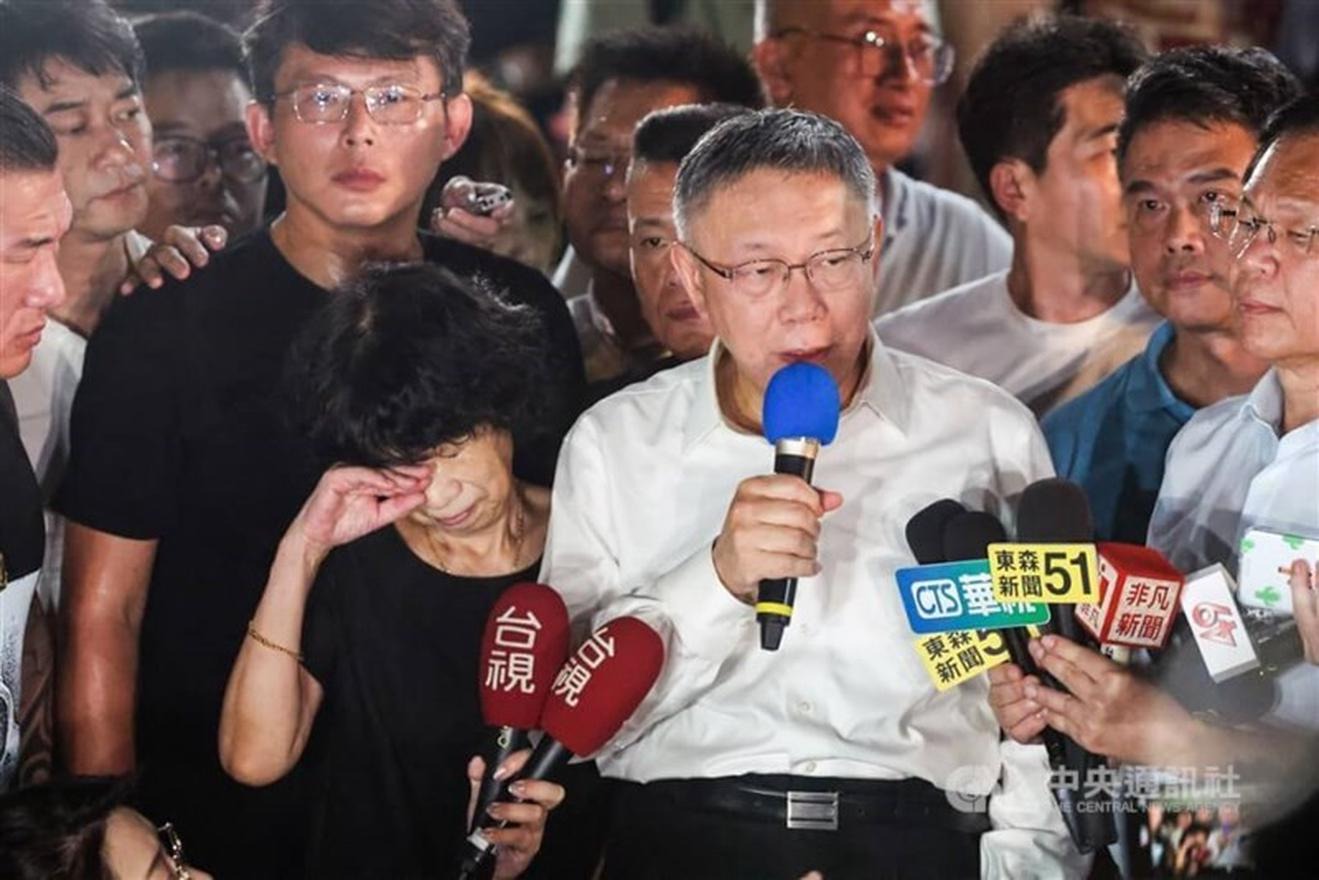 Chủ tịch Đảng Dân chúng Đài Loan Kha Văn Triết (áo sơ mi trắng) và vợ (áo đen), phát biểu trước những người ủng hộ vào ngày 2/9/2024. Ảnh: CNA