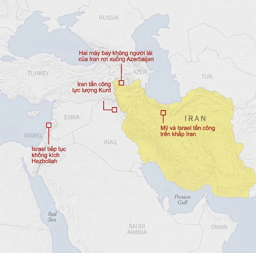 | Diễn biến chính trong xung đột Trung Đông ngày 5-3. Đồ họa: The New York Times |