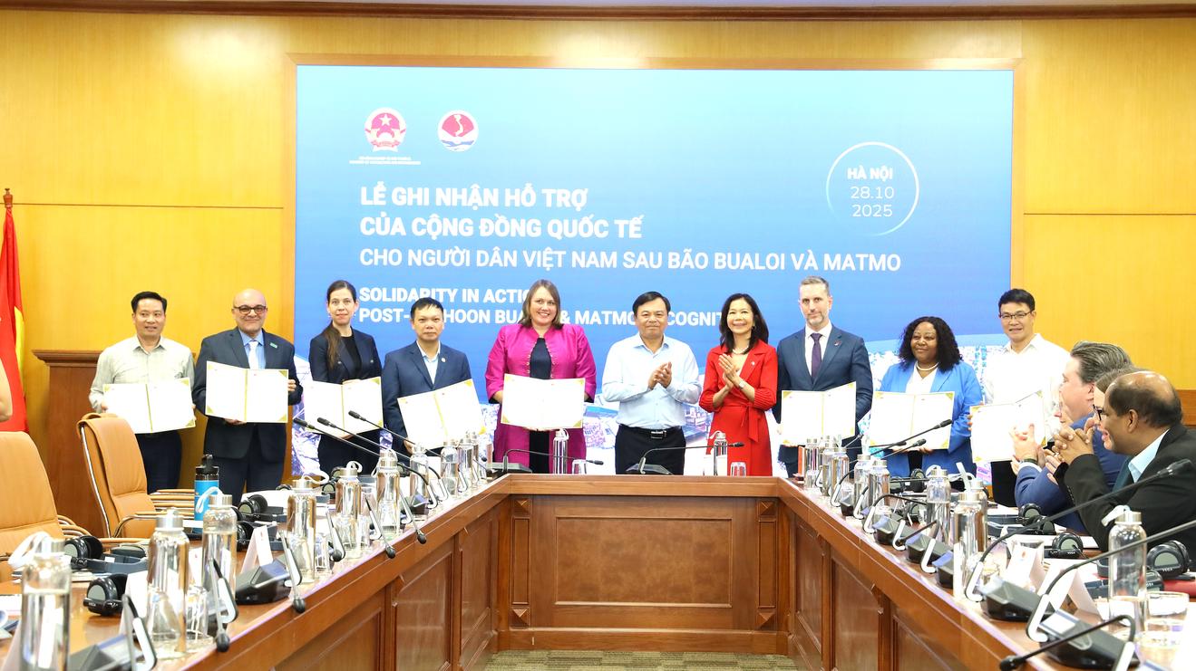 Sáng ngày 28/10, tại trụ sở Bộ Nông nghiệp và Môi trường, Đối tác Giảm nhẹ rủi ro thiên tai đã tổ chức Lễ ghi nhận của cộng đồng quốc tế cho người dân Việt Nam sau bão số 10 (Bualoi) và 11 (Matmo).