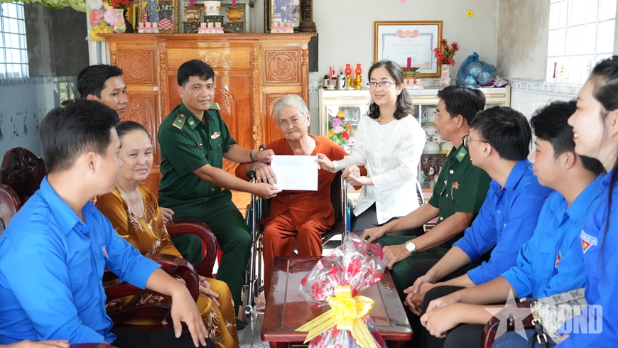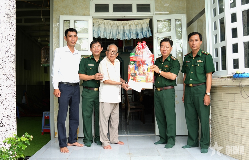 | Đồn Biên phòng Rạch Gốc phối hợp cùng địa phương thăm hỏi, tặng quà, động viên Bà mẹ Việt Nam anh hùng Nguyễn Thị Gặp (xã Phan Ngọc Hiển). |