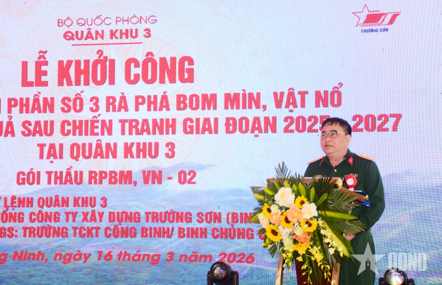Phát biểu tại buổi lễ, Thiếu tướng Nguyễn Đức Dũng, Phó tư lệnh, Tham mưu trưởng Quân khu 3 nhấn mạnh: Chiến tranh đã lùi xa, song bom mìn, vật nổ còn sót lại sau chiến tranh vẫn tiềm ẩn nguy cơ mất an toàn đối với đời sống, sinh hoạt và sản xuất của nhân dân. Thông qua dự án, góp phần từng bước làm sạch mặt bằng, bảo đảm an toàn cho nhân dân và tạo điều kiện thuận lợi cho việc triển khai các dự án phát triển kinh tế – xã hội, xây dựng cơ sở hạ tầng, phát triển nông nghiệp, lâm nghiệp và các hoạt động dân sinh khác trên địa bàn.