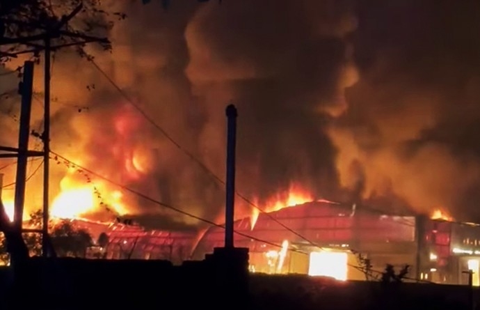 Khu xưởng nhựa tại xã Việt Yên, tỉnh Hưng Yên cháy dữ dội. Ảnh: vtcnews.vn |