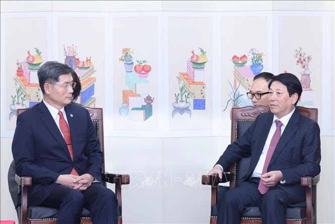 Theo đặc phái viên TTXVN, chiều 1-11 (giờ địa phương), trong khuôn khổ tham dự Tuần lễ Cấp cao Diễn đàn Hợp tác kinh tế châu Á - Thái Bình Dương (APEC) lần thứ 32 và làm việc song phương tại Hàn Quốc, Chủ tịch nước Lương Cường đã tiếp Chủ tịch Quỹ giao lưu quốc tế Hàn Quốc (KF) Kim Ghee Whan.