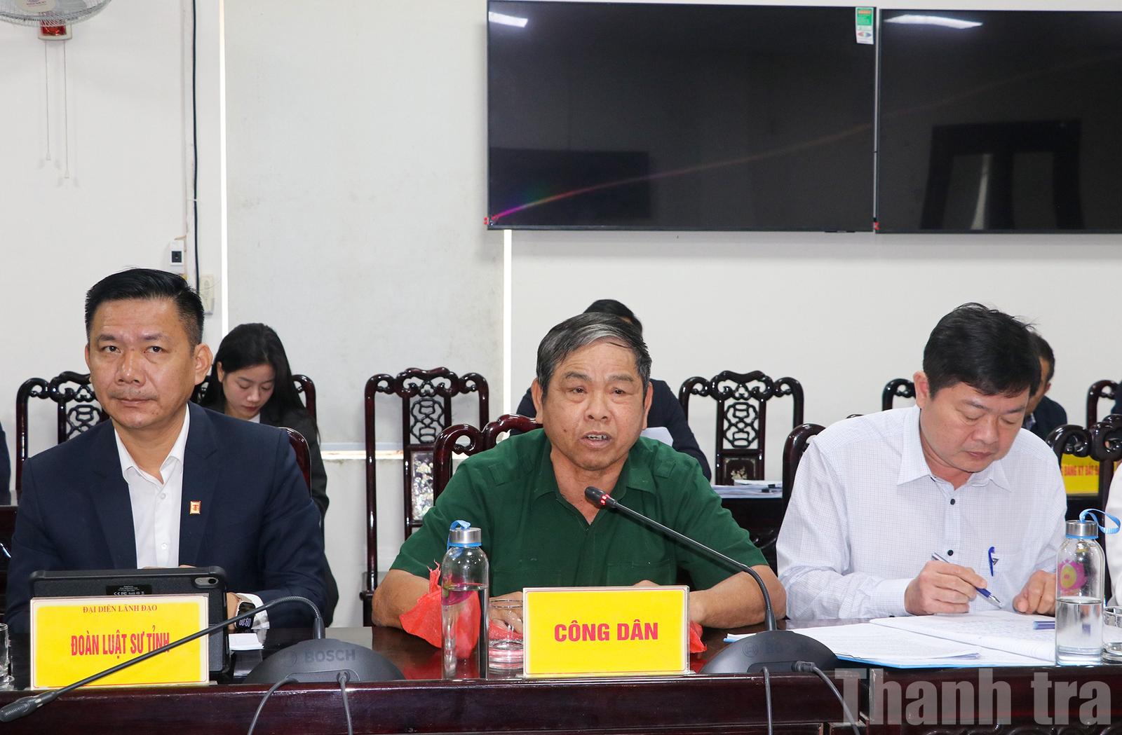 Trong đó, ông Dương Văn Thanh (khối Thuận Hòa, phường Trường Vinh) khiếu nại việc Nhà nước thu hồi 75,1 m² đất của gia đình khi triển khai Dự án đường ven sông Lam từ năm 2005 nhưng không được bồi thường theo quy định, đồng thời đề nghị được chuyển mục đích sử dụng thửa đất số 123, tờ bản đồ 89 sang đất ở.