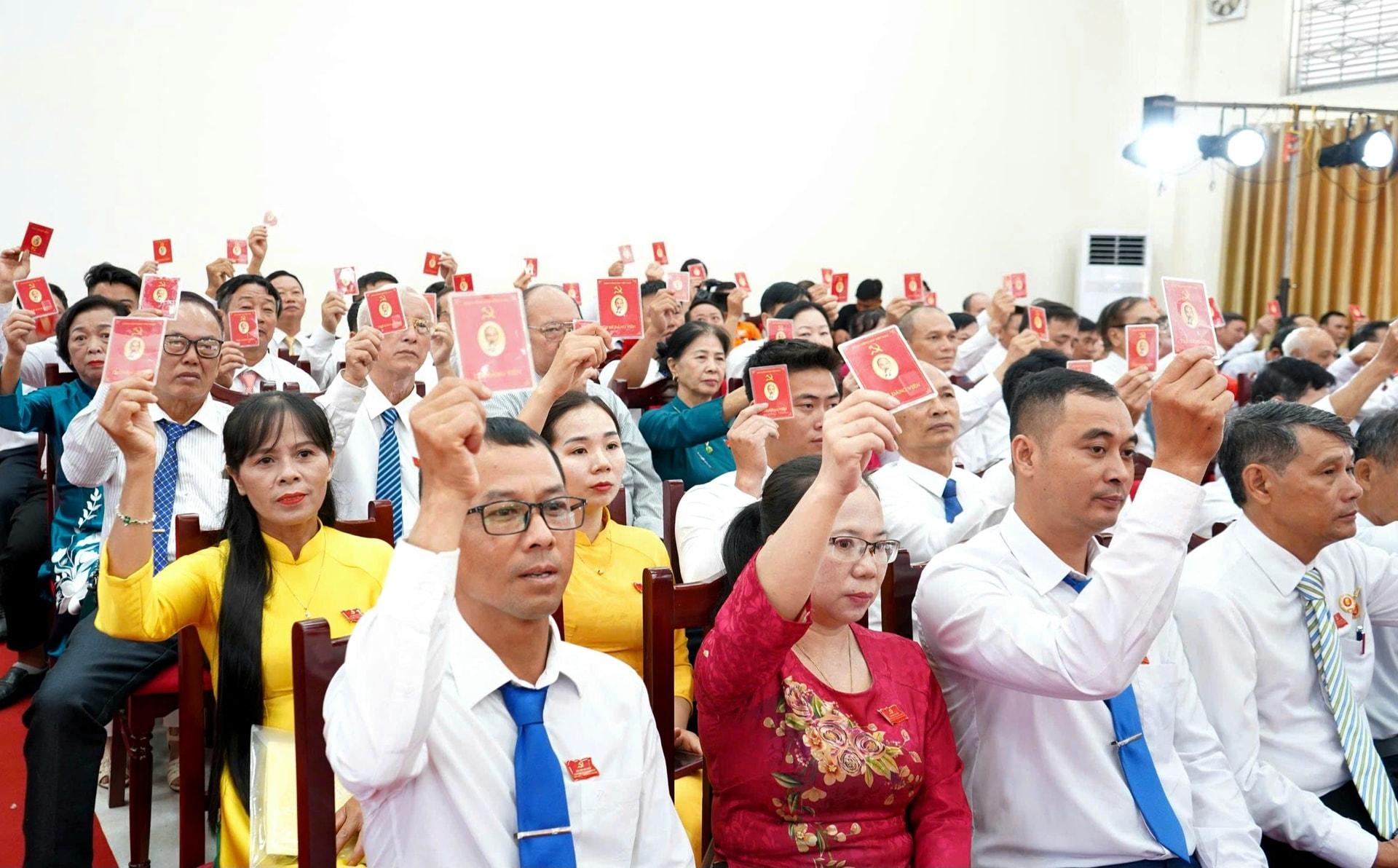 Các đại biểu biểu quyết thống nhất bằng thẻ Đảng tại Đại hội. Ảnh: Trung Nguyên