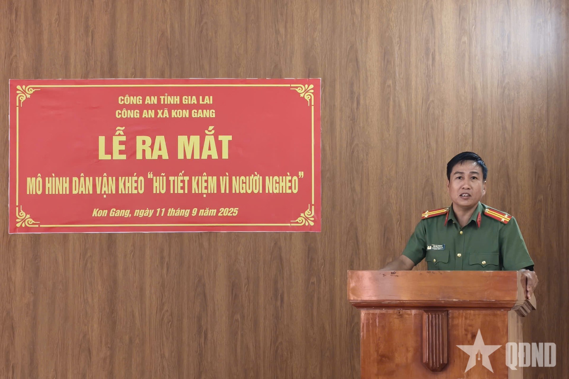 Phát biểu tại buổi lễ, Trung tá Vũ Hải Phong, Trưởng Công an xã Kon Gang nhấn mạnh: Mô hình Dân vận khéo “Hũ tiết kiệm vì người nghèo” không chỉ là hoạt động nhân văn, thiết thực mà còn góp phần củng cố niềm tin của nhân dân đối với lực lượng công an, qua đó tạo sự đồng thuận xã hội trong giữ gìn an ninh trật tự, thúc đẩy phong trào toàn dân bảo vệ an ninh Tổ quốc.