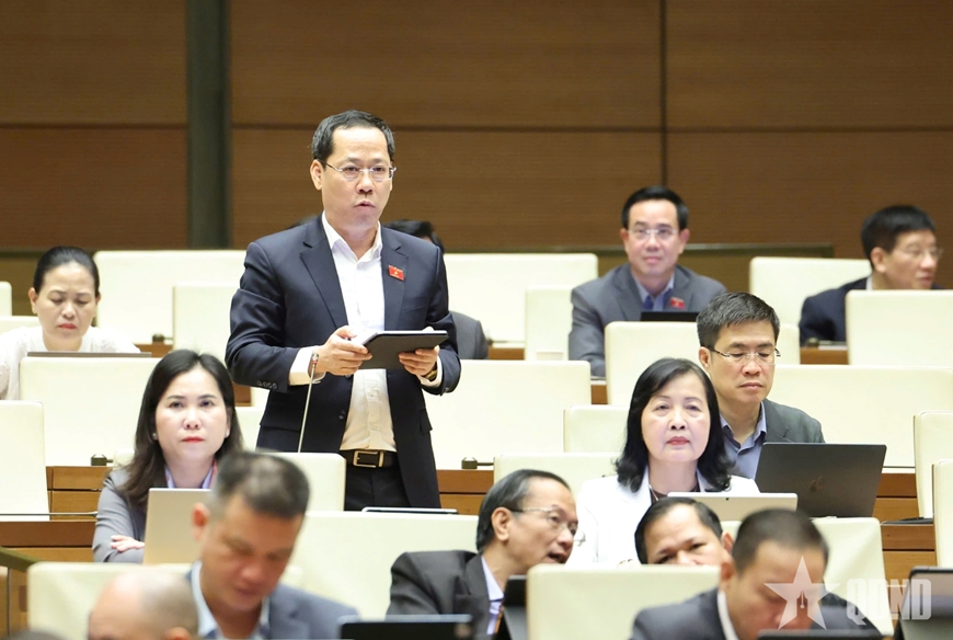 Đại biểu Trần Nhật Minh phát biểu tại phiên họp Quốc hội sáng 3-12. |