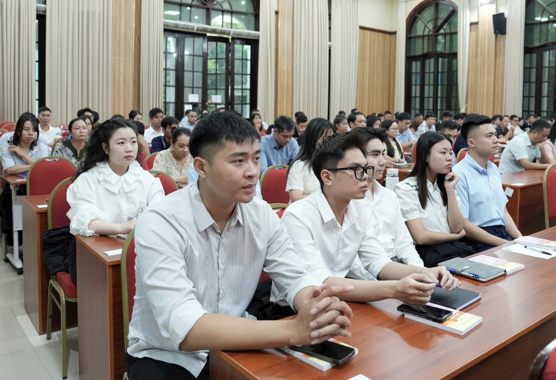 Các học viên nghe TS Đỗ Thị Thu Hà (Giảng viên chính, Học viện Chính trị khu vực I, Học viện Chính trị Quốc gia Hồ Chí Minh) truyền đạt nội dung chuyên đề. Ảnh: Đình Hiệp