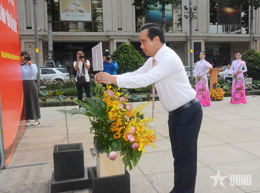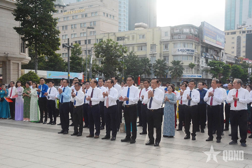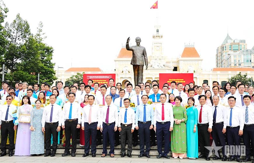 | Lãnh đạo TP Hồ Chí Minh và các điển hình được tuyên dương. |