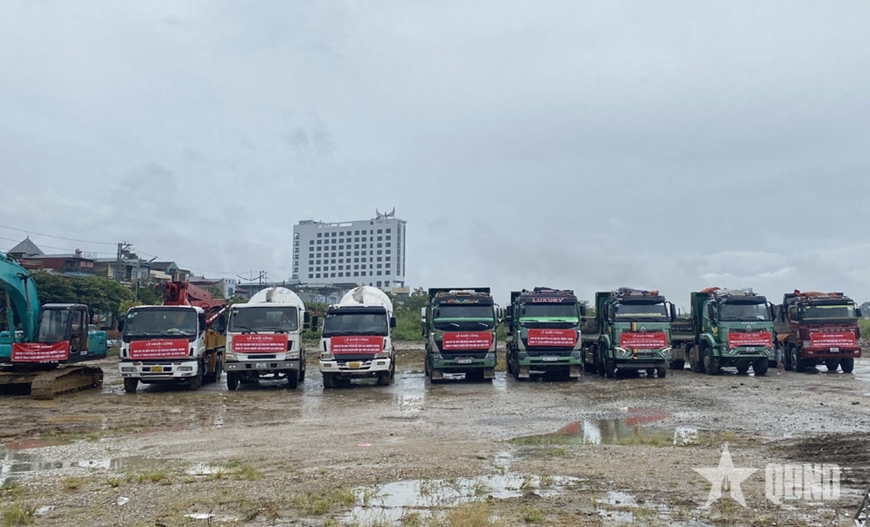 | Xe máy công trình được chủ đầu tư tập kết, sẵn sàng phục vụ cho hoạt động thi công. |